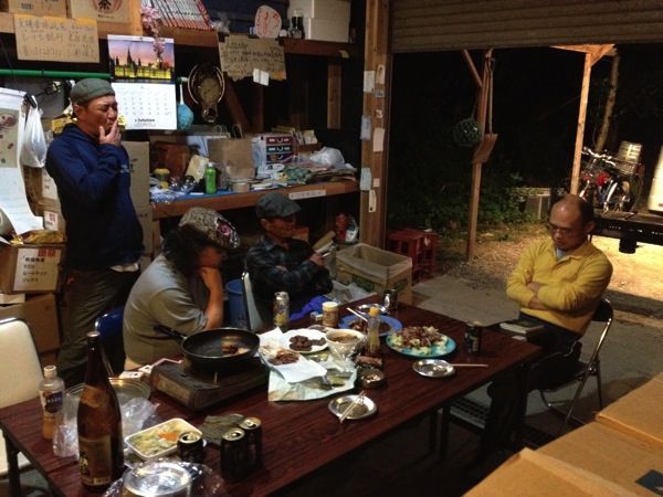 連日、さかなのみうらの倉庫では様々な人達が集い復興への話し合いがされてました。大黒柱の社長といつものメンバーの長さん、島津さんを交えてこの日は美術教員だった社長のお兄様にもお話しを伺えました。物資配給から被災者への支援方法や心のケアの在り方など現場の皆さんの生の声が心に響いてきました。