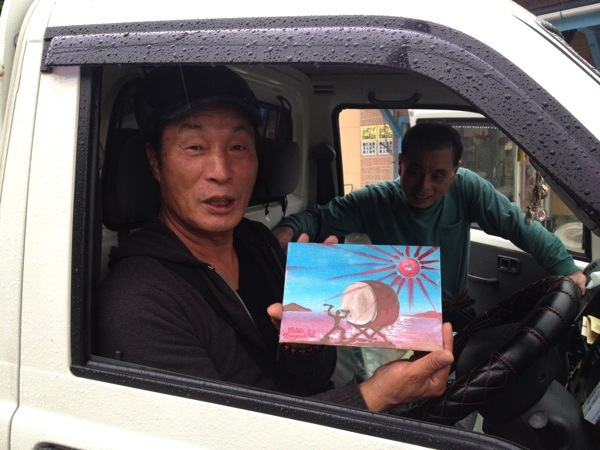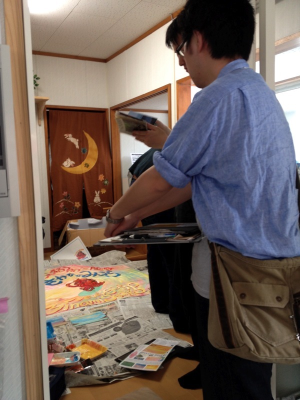 最初は僕も個展会場で販売したチャリテー作品の売上げは募金しようと想ってましたが、やはりお金の動く経緯がハッキリしないのと自分で届けたい気持ちが強くありました。時間はかかりましたけど、この機会に東北へ行かせてもらえて僅かでも自分に出来る絵を描かせてもらえたのは震災から一年以上が経過して世の中から忘れ去られてしまうことや困難と立ち向かう人の可能性を再確認する意味でも、とてもいい経験でありました。