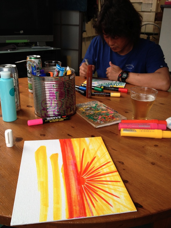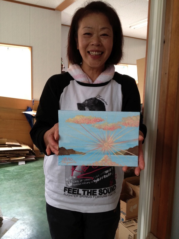 この震災後の状況を目の当りにして自分に出来る事は絵を描くことでしたが、人の生きる力の根源でもある芸術はやっぱり本来は値段など無く自由な表現であり、人の生きる活力なのだと皆さんの笑顔から再確認させてもらったことは大きな血と也、肉と成りました。今後の糧になるのは確かです。