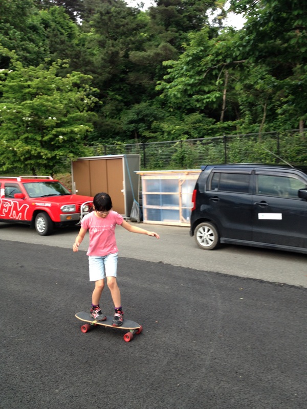 僕は子供達と束の間をスケートボードをして遊びました。