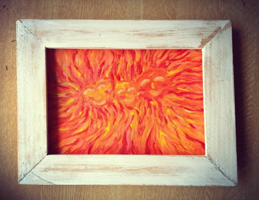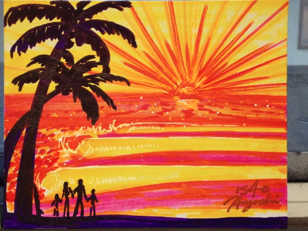 少しでも明るい希望と前向きな気持ちで日々を楽しむきっかけになれたらと想い、大好きだと仰る海から登る太陽を描かせてもらいました。
