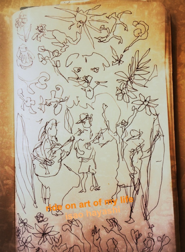 漁師の古株ミノさんです。滞在中に体調を崩した際には葛根湯とエナジードリンクを分けてくれましたぁ。お陰さまで悪化させずに復活出来ました。大好きな太鼓を叩いている様子を描いて欲しいとのことでこんな感じです。
