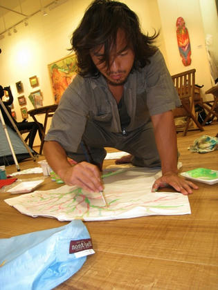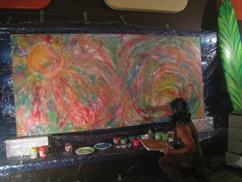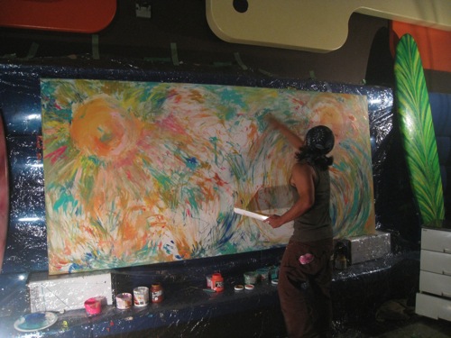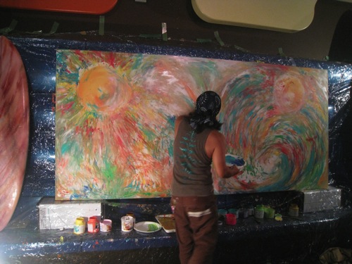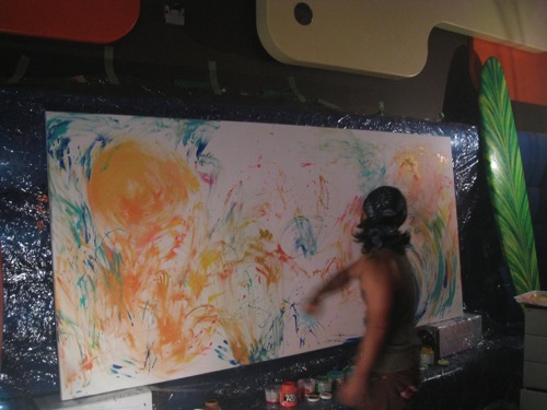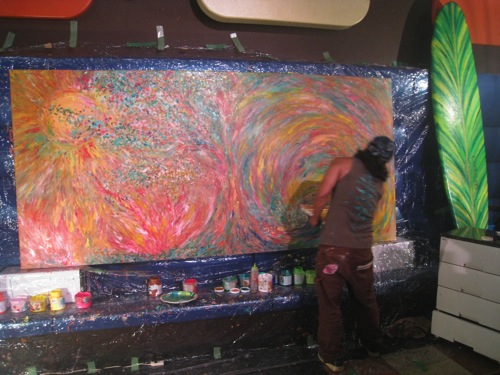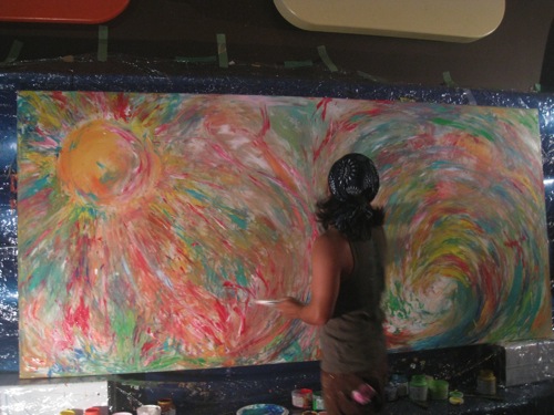 素直な気持ちで素手に絵具をつけて感じたままに表現した〜