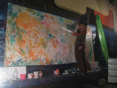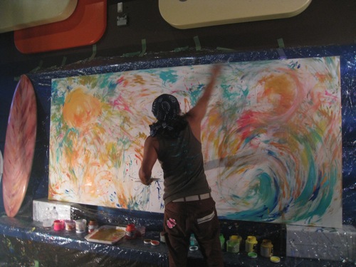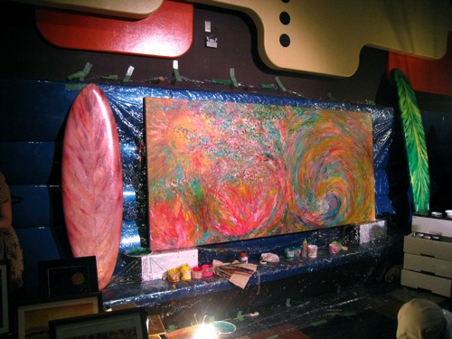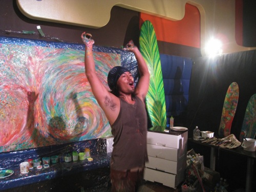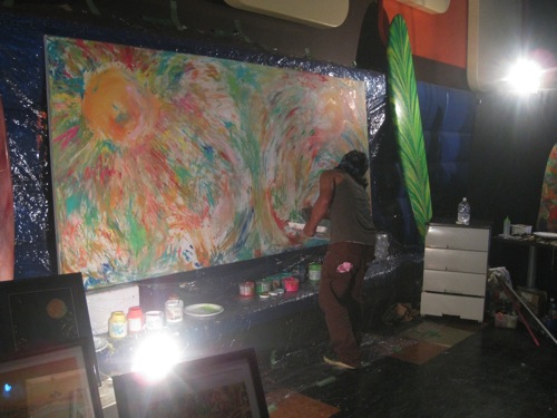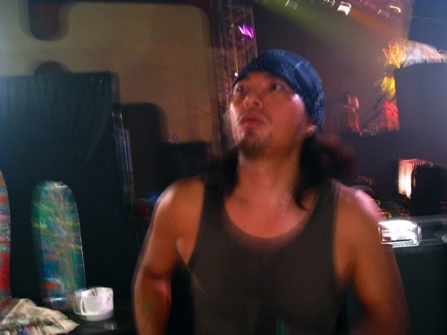 始まる1時間前には会場入りしてきたお客さんとDJサウンドですでに高揚とした雰囲気になってきたので己の描く為の舞台をいちよカタチ整えて集中力を高めに楽屋に向かった。