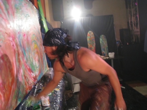 ステージが終わり振返るとライヴペインティングを観て気に入ってくれた人達が列をなしていたのにはビックリ。