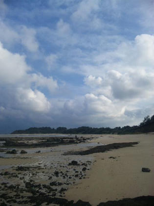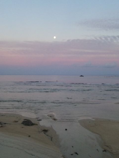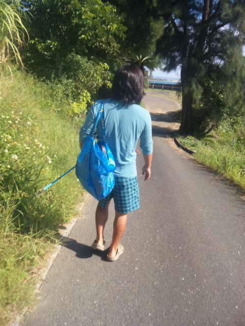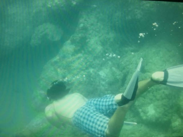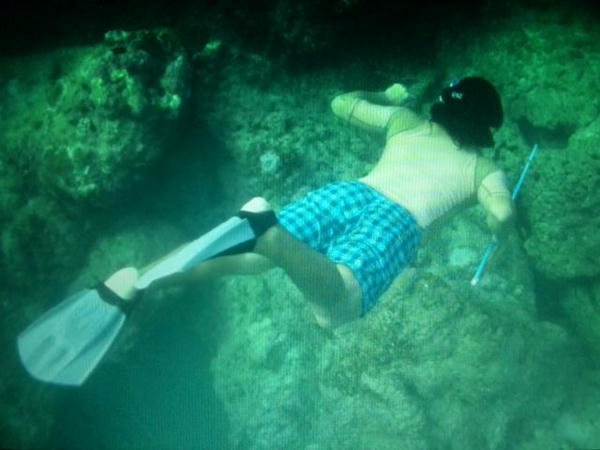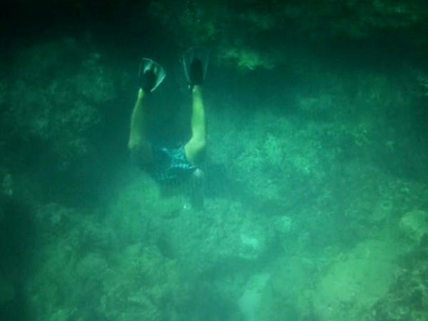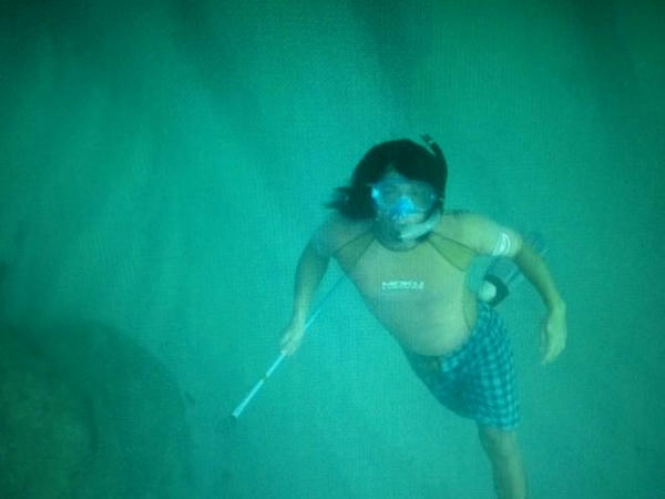 今日は家の前の海で素潜りの漁に挑戦しました。