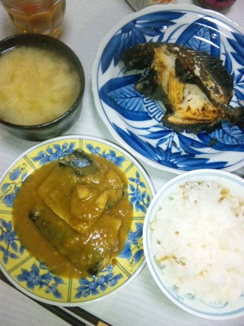 味噌煮にしたスーパーで買ったサバや白倉さんに頂いたお米や島の里芋と黄金芋の味噌汁と一緒に自然から頂いた命に感謝して美味しく頂きました。