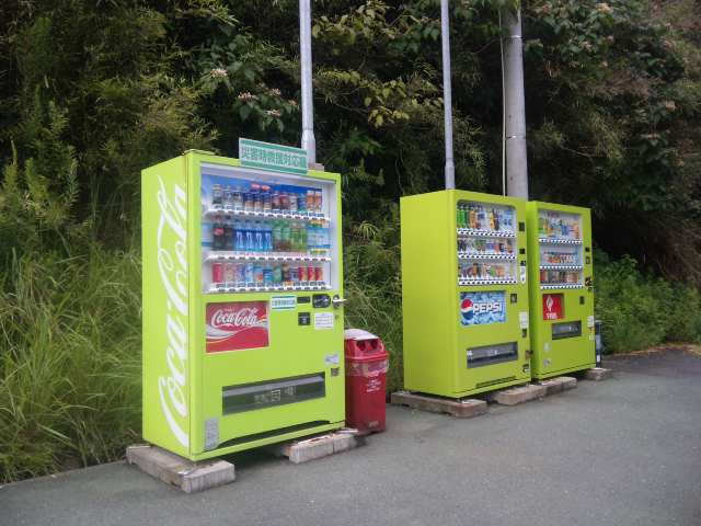 環境への配慮は海辺にある自販機でさえ徹底されていて各社の色を統一することで自然に極力馴染む仕様を実現してる。