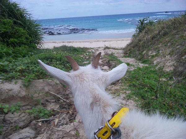 午後はヤギのメーと海岸まで散歩して夜はギターパンダをみてからフライヤーの画にペン入れした。
