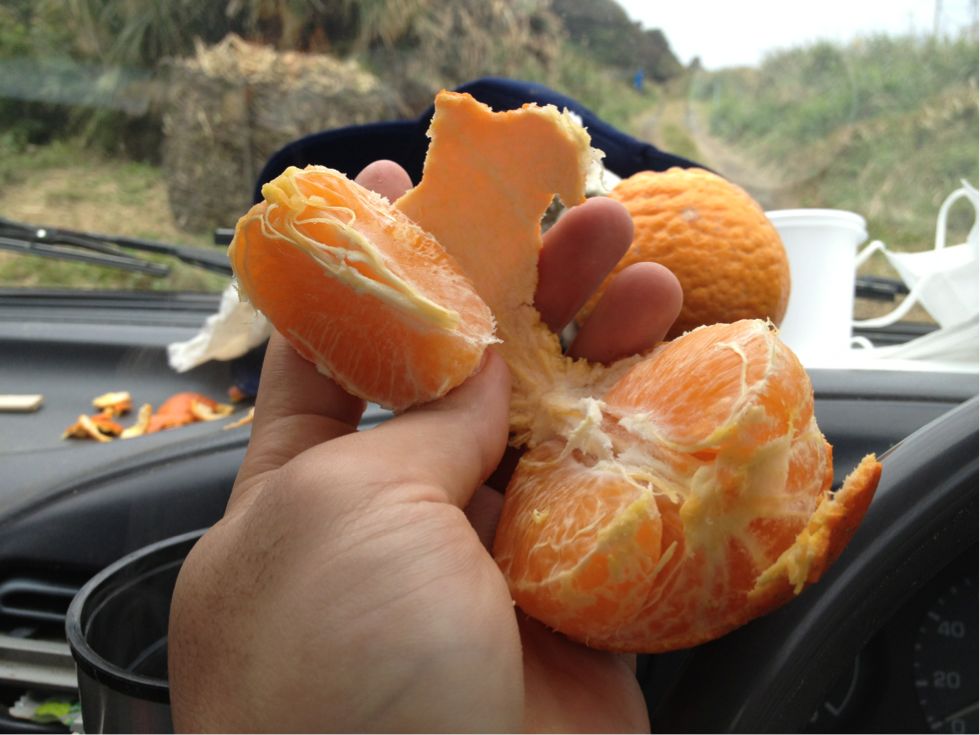 デザートは牧野家の倉庫横になるお父さんが育てたタンカン。島外にほとんどで回らないコレは今が時期でかなり美味。都会に並んでたら運送費が乗っかっりプレミアもついて結構なお値段か。遠くのモノは遠くに行って食べるから本当の味なのだし、石油資源も電気も消費が減る地産地消がやっぱりいい。それを現実にするには気に入る所で生かしてもらい暮らせるように努力するのみ