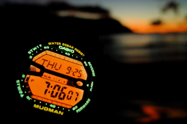 昨日今日となんか変だ。今日の日中はあまりうまく使えないうちに日が暮れてしまった。後で後悔したく無いから海に向かったものの着いたら陽が暮れてしまっていたので出ようか迷っているところにちょうど岸に戻ってきたマークが「見てみろよ、いいセット入ってるぞ!出た方がいいよ〜」と勧められてパドルアウトしてみるもののピークに着くとすでに夕方でなく夜が始まっていた。