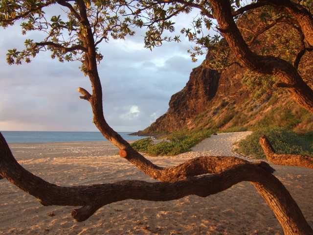 ダイアモンドヘッドの下に広がる住宅街に挟まれた三角形の公園は座るベンチはなく芝生と横に低く長く伸ばした幹が素晴らしい巨木達が暮らしてる。