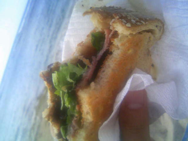 しばらくするとお腹が減ってきたので家でひとつだけ作ってキッチンペーパーに包んで持ってきたターキーハム二枚とオーガニックレタスのサンドイッチをゆっくり食べて味わった。