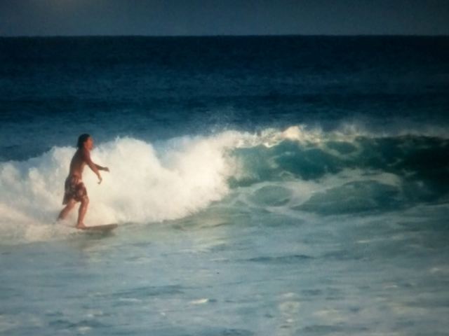 撮影してる最中に話しかけられ色々話すとデンジロウさんやシェイパーのMitsuさん、奄美の緑義人くんなどなど共通の知人がいてカウアイにもよく来ていたとのこと。
