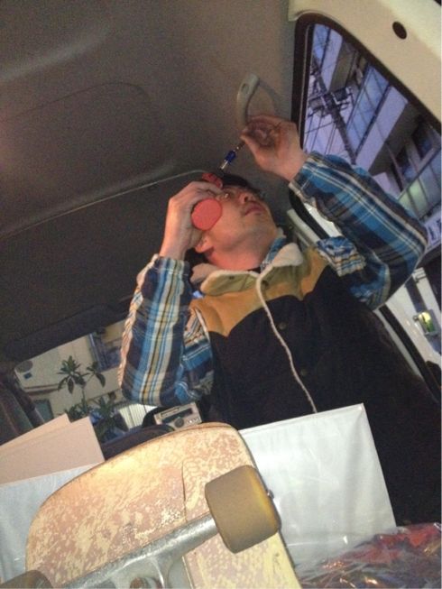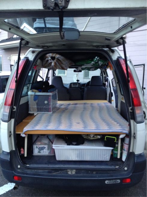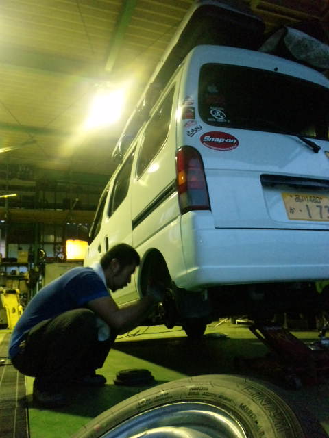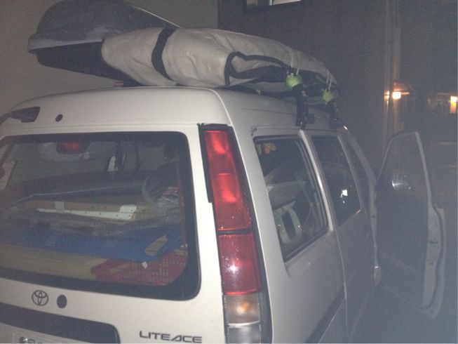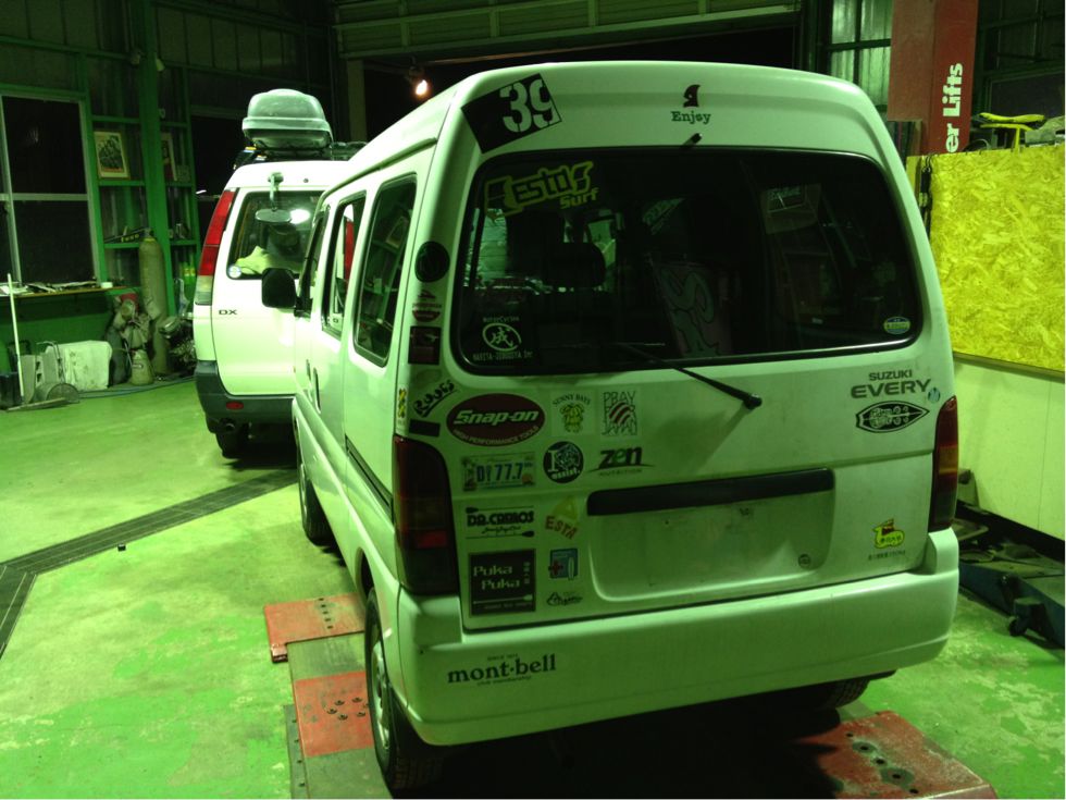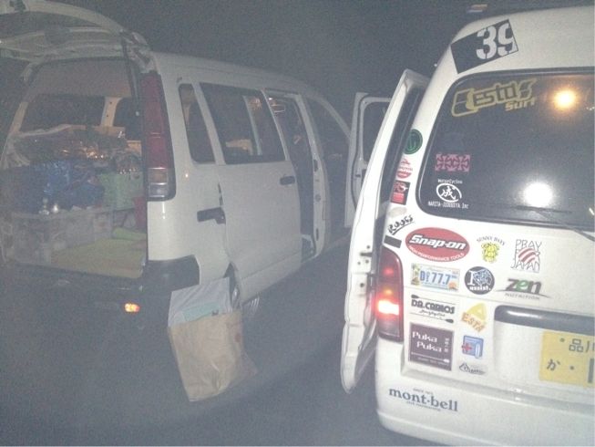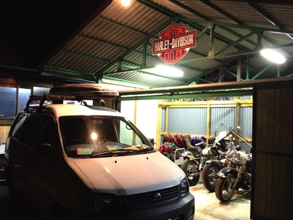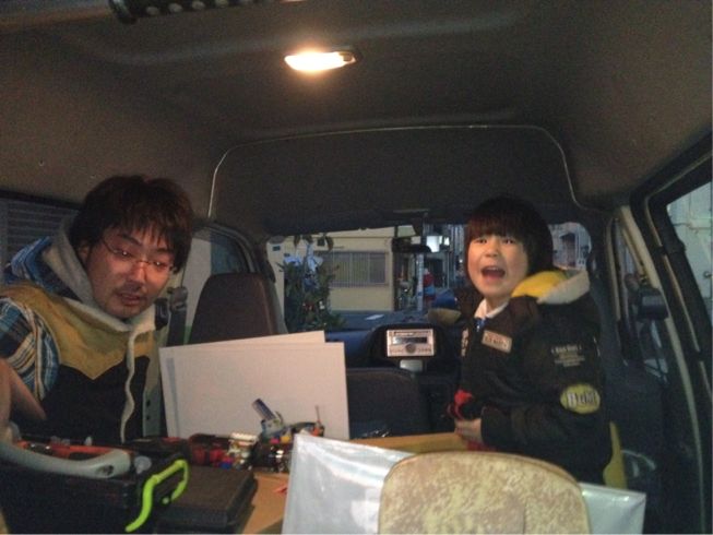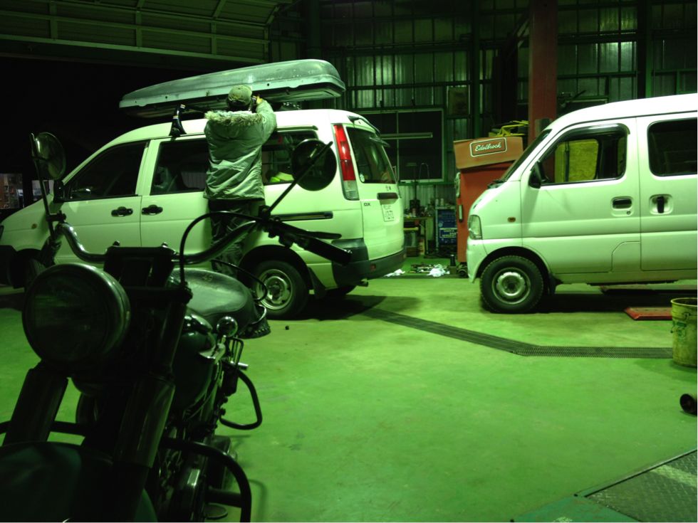 二年の車検が切れる当日にギリギリでいつもお世話になってる茨城の成田自動車に到着。ハーレー屋さんの成田君が使ってたヴァンに乗り換えさせてもらい冷気が立ち込めるなか荷物移動してクルマを譲ってもらえることになり移動車が確保出来てギリギリ助かった。