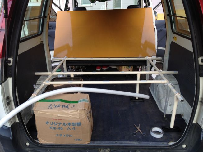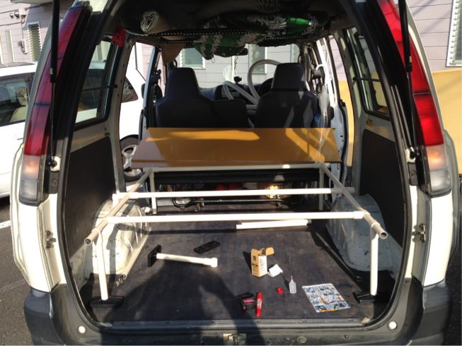 ルーフレールやボックスも移動して旅仕様へ~ 直角でリクライニングしなかったパッセンジャーシートもあれやこれやと簡易アレンジして旅仕様に出来た! 知恵は1人より2人合わせると二人以上に膨らむもんですね。 納品を控えた49'パンヘッドにも会えました。