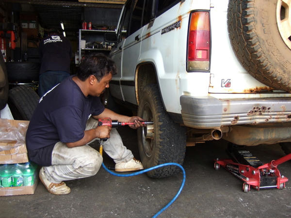 ボールジョイントもダメだからアライメントは出来ないよ。」